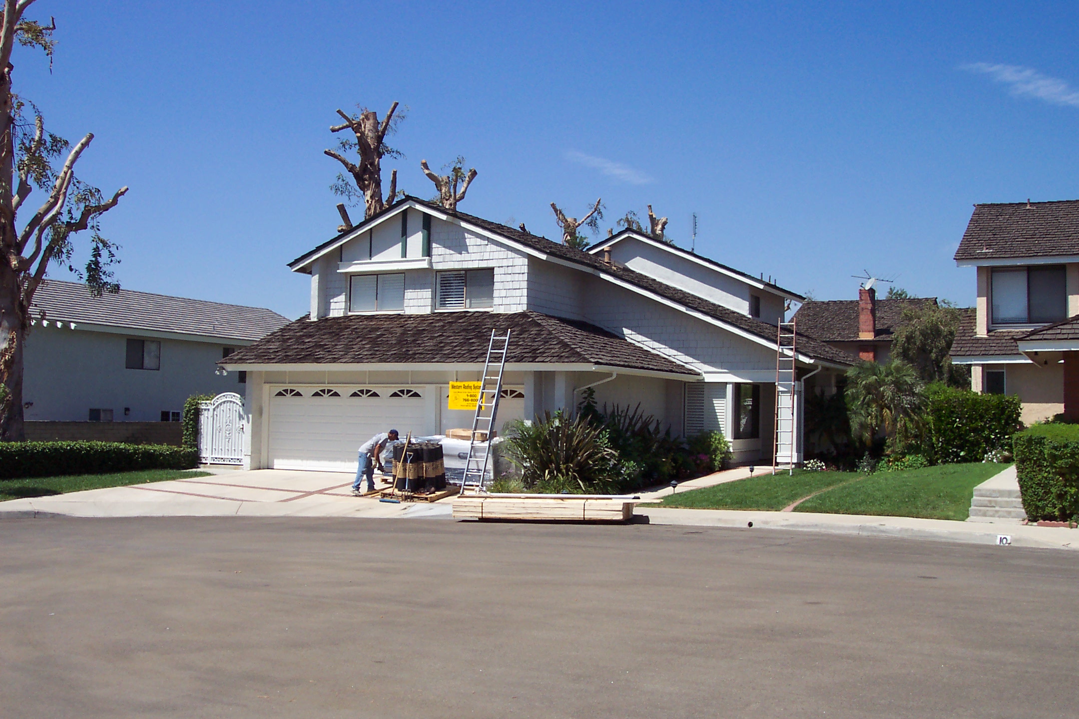 Old roof intact, new roof materials arrive